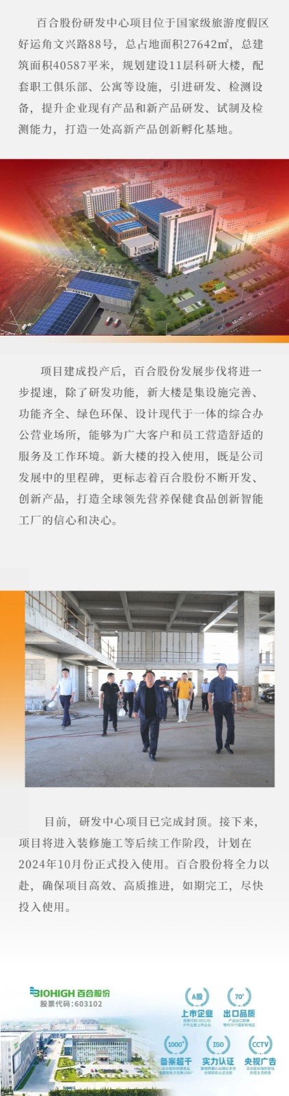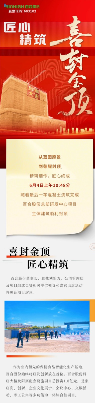 荣耀封顶!百合股份研发中心项目封顶仪式隆重举行
